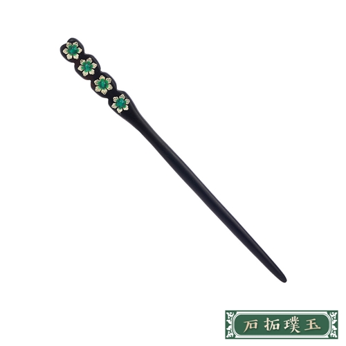 碧色連排小百合黑檀木盤髮髮簪*石拓璞玉* |