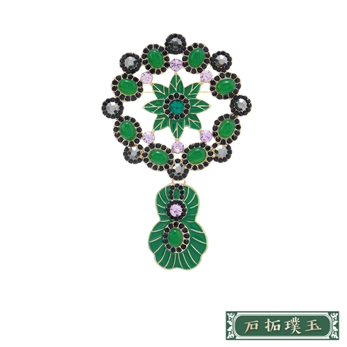 宮廷風氣質祖母綠釉彩寶石蓮花胸針*石拓璞玉* |