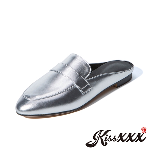[快速出貨] 金屬質感亮皮時尚包頭低跟穆勒鞋 銀*KISSXXX* |