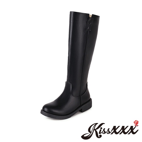 [快速出貨] 經典率性騎士風低跟時尚長靴 黑*KISSXXX* |