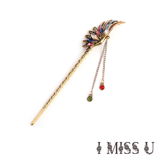 [快速出貨] 時尚民族風鳳翎羽毛水晶流蘇髮簪*I MISS U* |