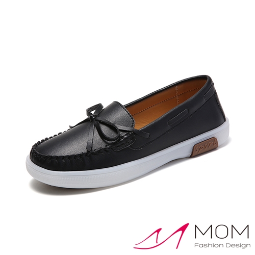 經典蝴蝶結繫帶小圓頭平底樂福鞋 黑*MOM* |