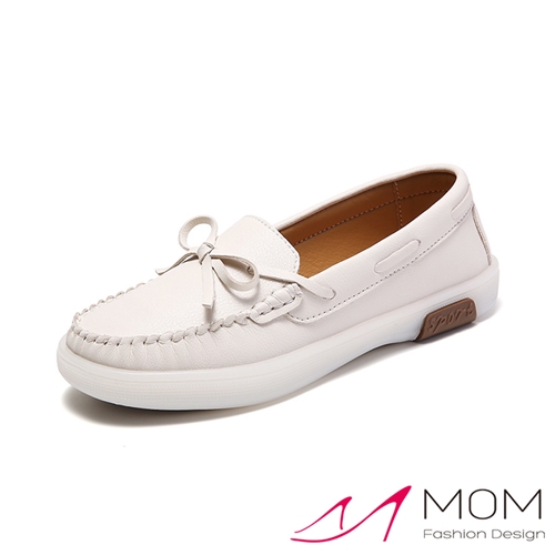 經典蝴蝶結繫帶小圓頭平底樂福鞋 米*MOM* |