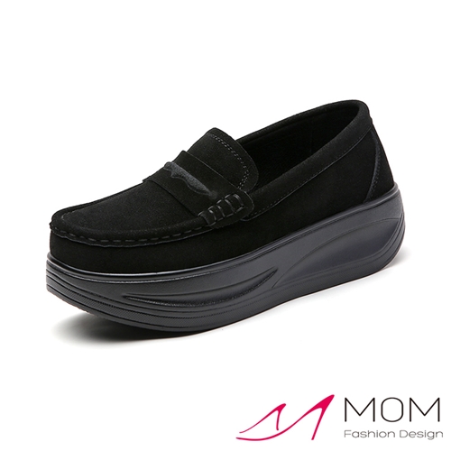百搭翻絨皮面輕量鬆糕厚底樂福鞋 黑*MOM* |