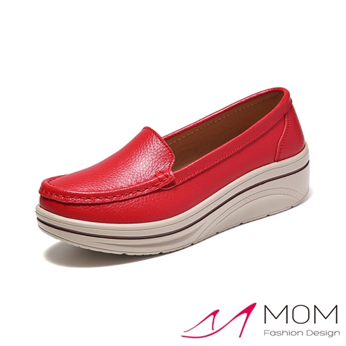 真皮純色氣質百搭坡跟厚底樂福鞋 紅*MOM* |