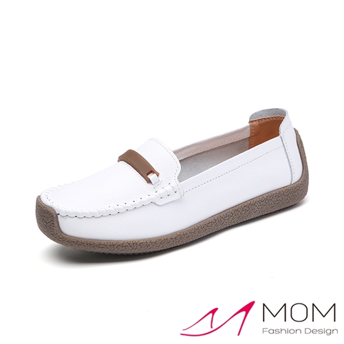 氣質純色釦帶時尚舒適平底蝸牛鞋 休閒鞋 白*MOM* |