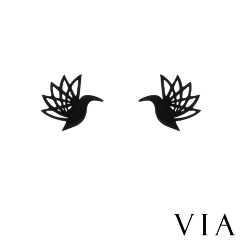 [快速出貨] 動物系列 飛翔鳥兒意象造型白鋼耳釘 黑色*VIA* |
