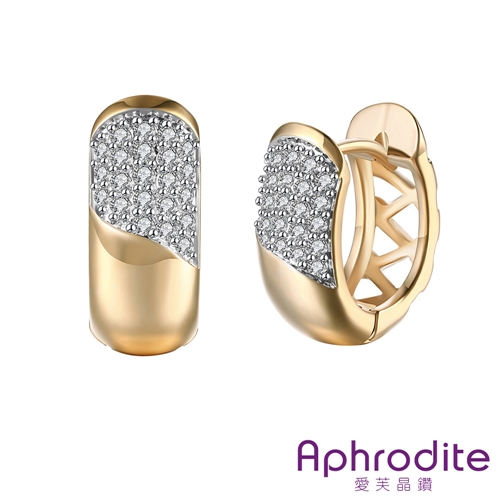閃耀美鑽鑲嵌歐美時尚耳扣 耳環 香檳金色*愛芙晶鑽* |