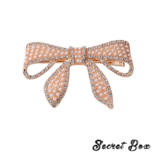 [快速出貨] 輕奢華麗美鑽珍珠蝴蝶結髮夾 2色任選*SECRET BOX* |