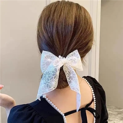 [快速出貨] 蕾絲花朵蝴蝶結珍珠彈力髮帶 3色任選*MISS KOREA* |