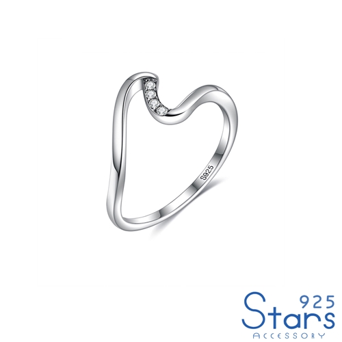 純銀925微鑲美鑽幾何曲線造型戒指 白金色*925 STARS* |
