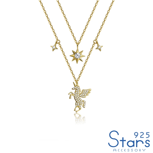 純銀925閃耀美鑽八芒星獨角獸雙層項鍊 2色任選*925 STARS* |