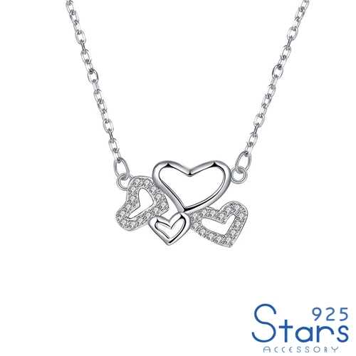 純銀925微鑲美鑽心心相印愛心線條造型項鍊*925 STARS* |