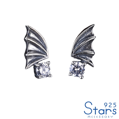 純銀925暗黑蝙蝠翅膀美鑽鑲嵌造型耳釘 耳環*925 STARS* |