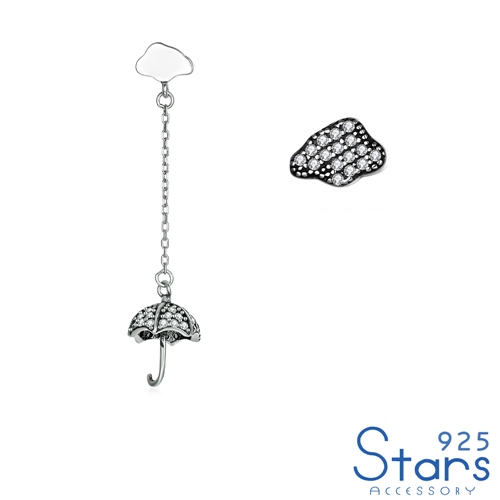 純銀925微鑲美鑽不對稱烏雲與小雨傘造型耳環*925 STARS* |