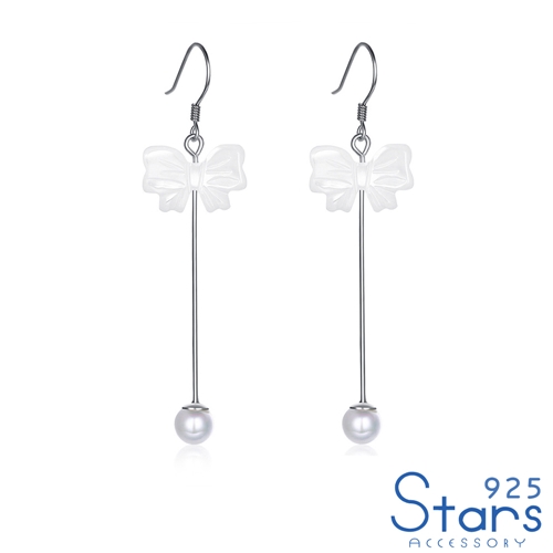 純銀925優雅蝴蝶結浪漫長墜珍珠耳環*925 STARS* |