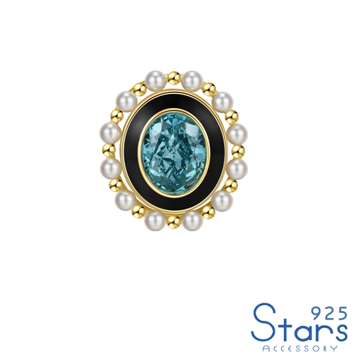 純銀925閃耀光芒冰花切面寶石珍珠橢圓吊墜 項墜*925 STARS* |