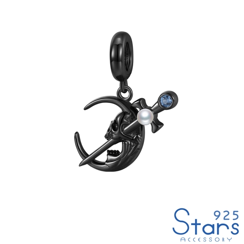 純銀925月牙骷髏聖劍珍珠鋯石鑲嵌造型吊墜串珠*925 STARS* |