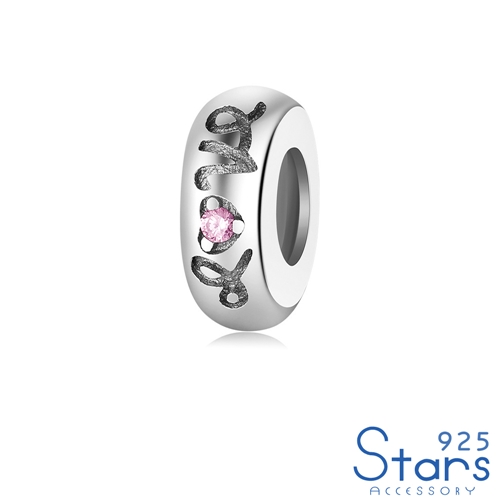 純銀925閃耀粉鋯鑲嵌LOVE造型串珠 定位珠 隔間珠*925 STARS* |