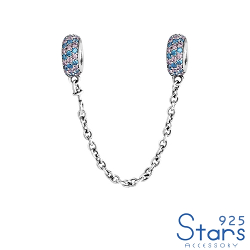 純銀925粉藍彩鋯滿鑽鑲嵌造型DIY隔間珠 安全鍊*925 STARS* |