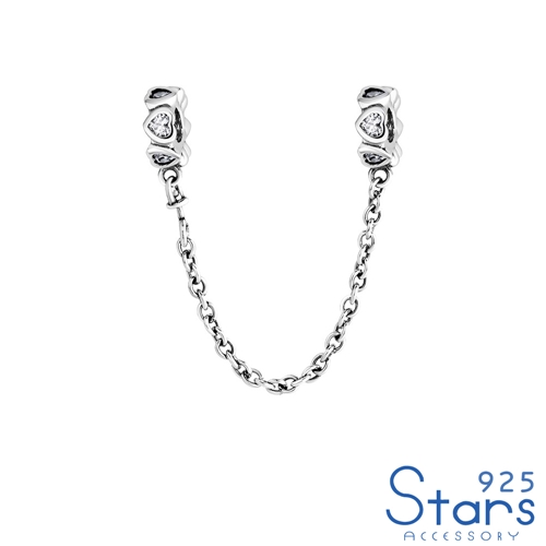 純銀925甜美愛心鋯石DIY隔間珠 安全鍊 2色任選*925 STARS* |
