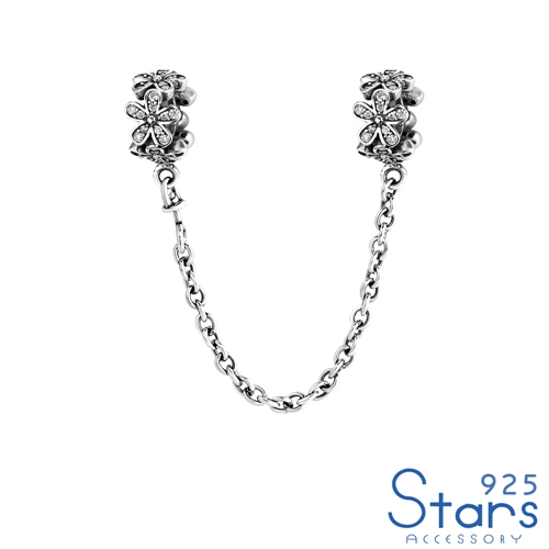 純銀925微鑲美鑽鑲嵌花朵造型DIY隔間珠 安全鍊*925 STARS* |