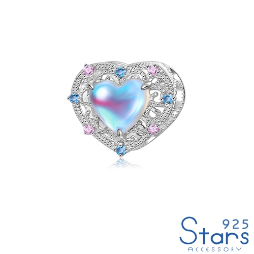 純銀925閃耀愛心月光石縷空彩鋯鑲嵌造型串珠*925 STARS* |