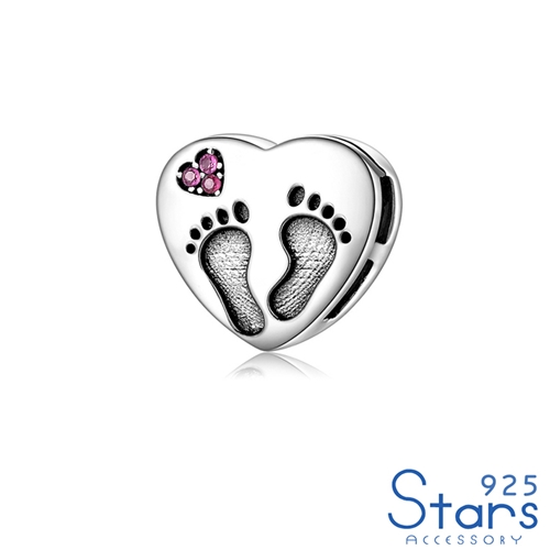 純銀925美鑽鑲嵌愛心腳掌掌印手錶鍊夾珠 串珠*925 STARS* |