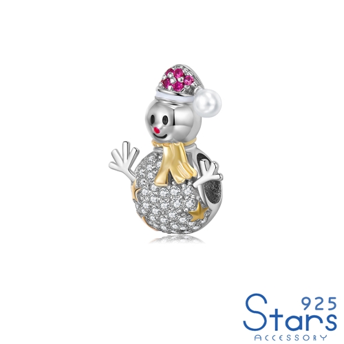純銀925滿鑽鑲嵌可愛雙色小雪人造型串珠*925 STARS* |