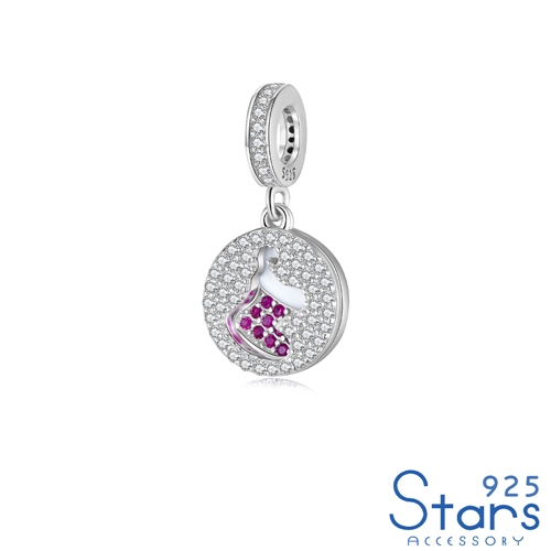 純銀925華麗滿鑽鑲嵌聖誕襪小圓牌造型吊墜串珠*925 STARS* |