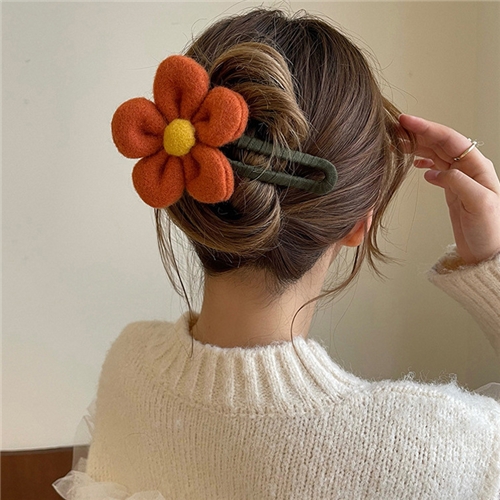 [快速出貨] 可愛胖胖毛呢花朵超大鴨嘴夾 馬尾夾 6色任選*MISA* |