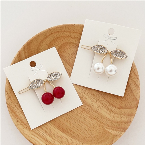 [快速出貨] 美鑽小櫻桃珍珠一字髮夾 2色任選*MISS KOREA* |