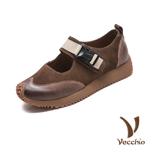 全真皮頭層牛皮復古文藝風拼接厚底娃娃鞋 咖*VECCHIO* |