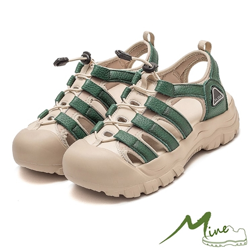 真皮頭層牛皮護趾機能舒適厚底休閒涼鞋 綠*MINE* |