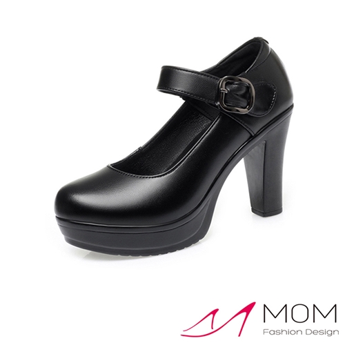 真皮頭層牛皮輕量大底個性一字皮帶釦飾粗跟鞋 4款任選*MOM* |