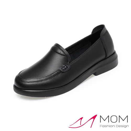 真皮純色素面百搭低跟樂福鞋 黑*MOM* |