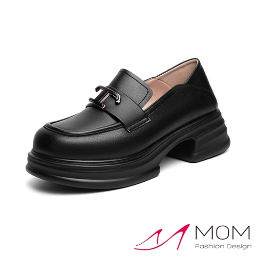 真皮兩穿法設計T字釦軟皮輕量厚底樂福鞋 黑*MOM* |