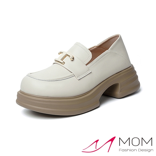 真皮兩穿法設計T字釦軟皮輕量厚底樂福鞋 米*MOM* |