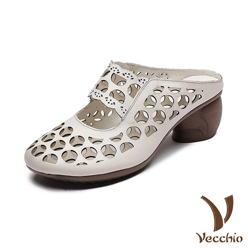 真皮頭層牛皮錯位圈圈縷空包頭粗跟拖鞋 2色任選*VECCHIO* |