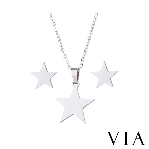 [快速出貨] 符號系列 經典五角星星白鋼耳釘項鍊套組 鋼色*VIA* |