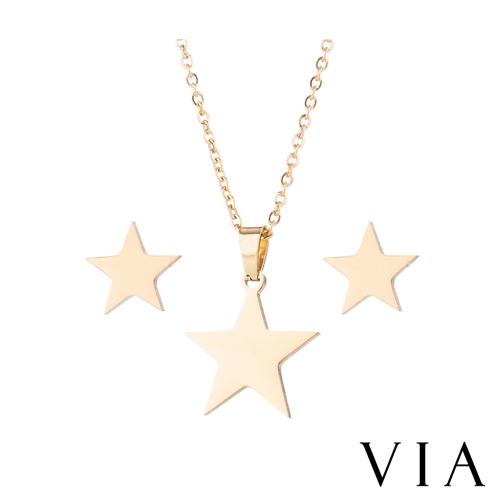 [快速出貨] 符號系列 經典五角星星白鋼耳釘項鍊套組 金色*VIA* |