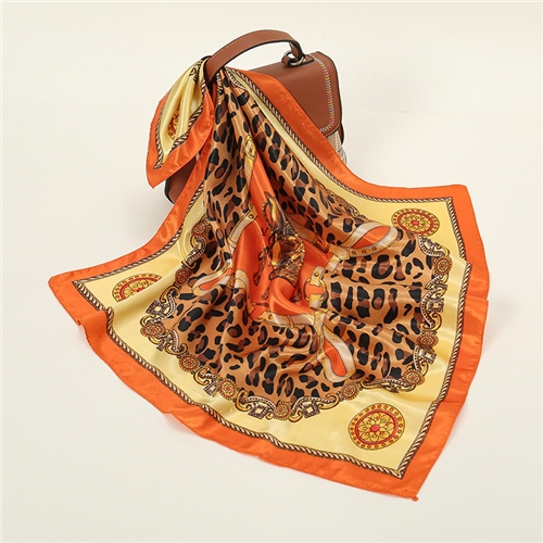 [快速出貨] 時尚豹紋拼接印花60X60百搭絲巾 領巾 包包綁帶*Sukie* |