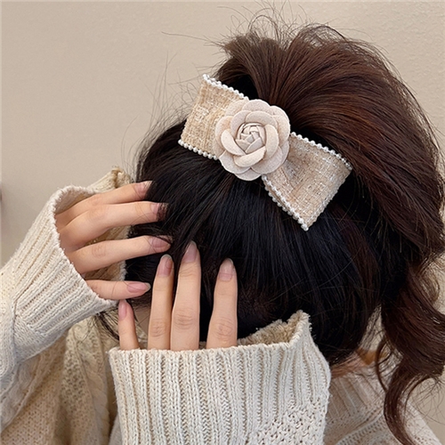 [快速出貨] 法式復古毛呢山茶花釦蝴蝶結造型髮夾 2款任選*INES* |