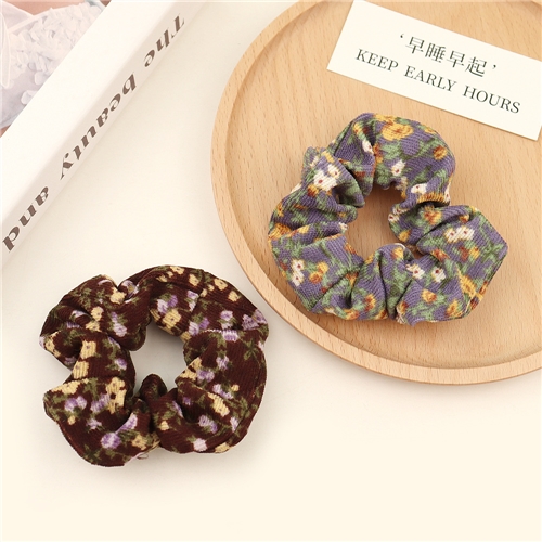 [快速出貨] 質感絨面田園碎花圖樣大腸圈 髮圈 2色任選*INES* |
