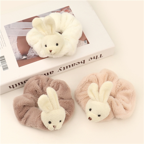 [快速出貨] 可愛立體毛絨小兔造型大腸圈 髮圈 3色任選*MISA* |
