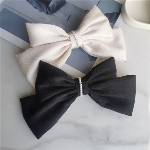 [快速出貨] 素色優雅珍珠鍊飾大蝴蝶結髮夾 馬尾夾 2色任選*INES* |