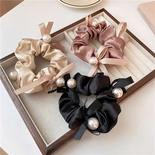 [快速出貨] 亮絲緞面珍珠蝴蝶結大腸圈 3色任選*MISS KOREA* |