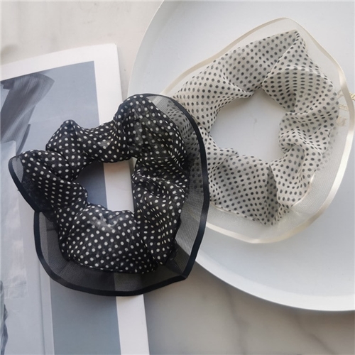 [快速出貨] 復古撞色小圓點歐根紗大腸圈 髮圈 2色任選*INES* |