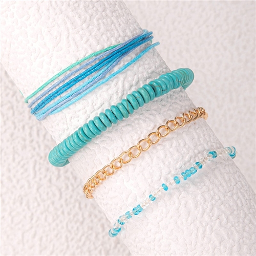 [快速出貨] 度假風時尚撞色編織腳鍊4件套組*I MISS U* |
