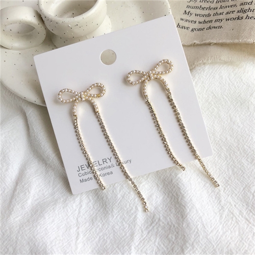 [快速出貨] S925銀針唯美珍珠蝴蝶結鑽條長耳環*SECRET BOX* |